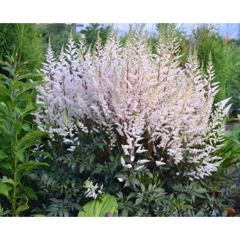 Рассада астильбы японской Бронзлауб (Bronzelaub) поразит вас необычным бронзовым окрасом весенних листьев. В июле появятся лёгкие ажурные кремово-белые цветы, собранные в роскошные ромбические соцветия. Семена и рассаду надо оберегать от засухи и ярких солнечных лучей, высаживать на хорошо увлажнённую питательную почву на полузатемнённые участки. Bronzelaub относится к многолетним растениям, но каждые 4-5 лет надо делить куст. Растение компактное, в высоту достигает всего 40-50 см. Листья тёмно-зелёные, но весной приобретают бронзово-коричневый цвет.