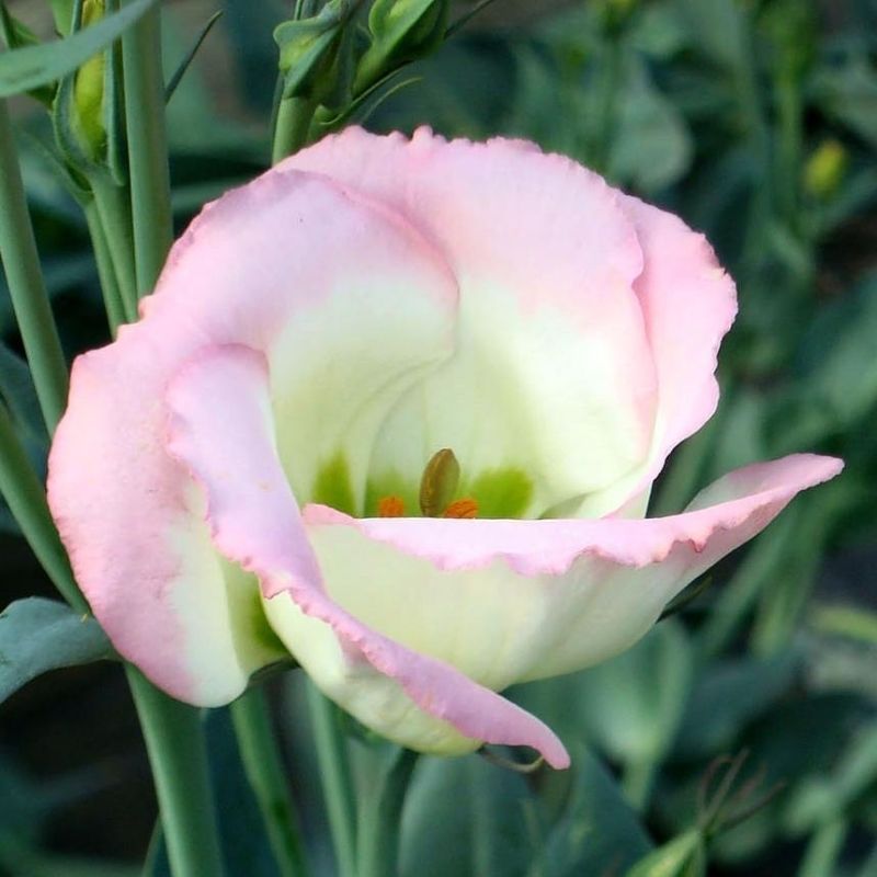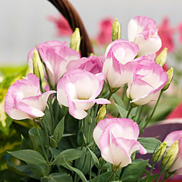 Эустома Сапфир Пинк Рим - это удивительное растение с бело-розовыми цветками, словно покрытыми воском, которые привлекают внимание своей нежной красотой. Высота этого растения составляет 10-15 см, что делает его идеальным для одиночных посадок. Листья эустомы имеют летнюю окраску, напоминающую покрытый воском настоящий садовый алмаз.