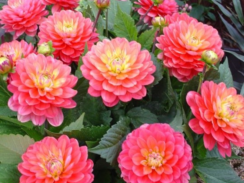 Луковицы георгины Декоративной Мелоди Аллерго (Melody Allegro) принадлежат к низкорослой группе сортов. Многолетник чудесно смотрится, высаженный вдоль дорожек, его выращивают в вазонах и контейнерах. Яркие оттенки лепестков на многочисленных соцветиях добавят праздничного настроения участку.