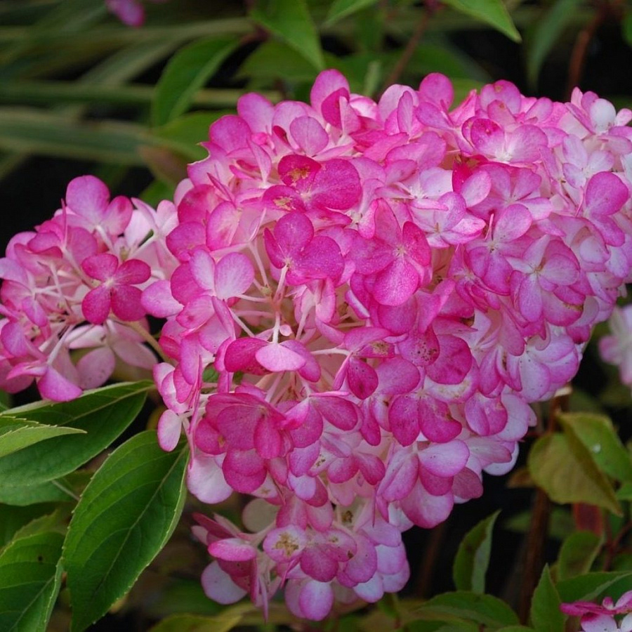 • делением куста. Цвести гортензия начинает в середине июня – соцветия-метелки достигают длины в 25 сантиметров. В начале цветения цветы белые, позднее лепестки приобретают темно-розовый оттенок. Крупномер необходимо высаживать в плодородную, хорошо увлажненную почву. Выбор места не имеет особого значения – гортензия прекрасно цветет как под ярким солнцем, так и в тени.