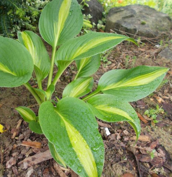 • Привлекательный сорт хосты, листья в форме сердца, в основном зеленые, с тонкой желтой полоской в середине листа, ближе к осени меняют цвет становятся средне-зелеными с кремовой сер