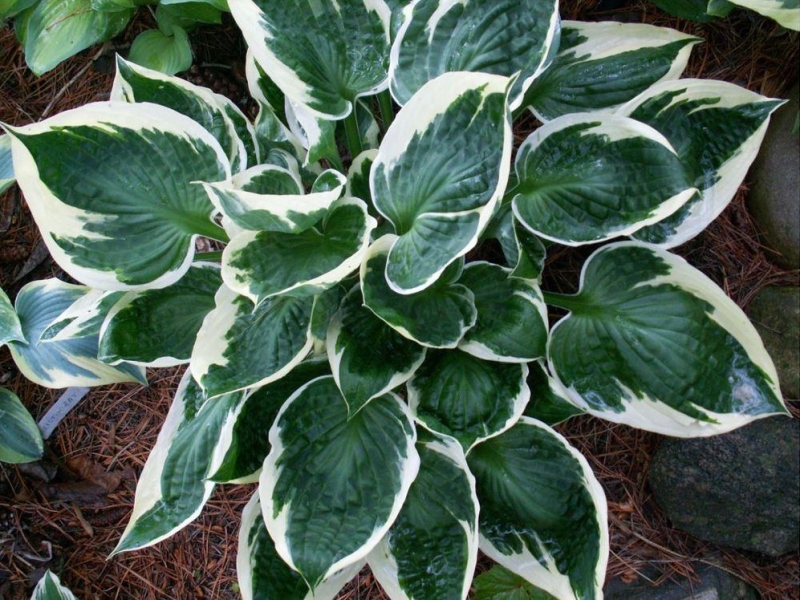 Хоста сорта Karin (Карин) представляет собой кустарник около 40 см в высоту и 65 см в ширину. Листва его темно-зеленого оттенка с большим белым окаймлением. Во время цветения появляются небольшие фиолетовые цветки. Располагать хосту Карин лучше в полутени. На одном месте она растет до 20 лет, не требуя пересадки. Почву следует подбирать подкисленную и с хорошим увлажнением. Растение нормально переносит морозы и ему не потребуется дополнительного укрытия. Кустарник эффектно будет смотреться даже в одиночных посадках, а также при оформлении рабаток или бордюров. Он отлично дополнит искусственные водоемы на участке.