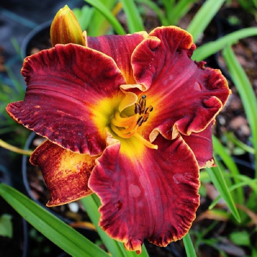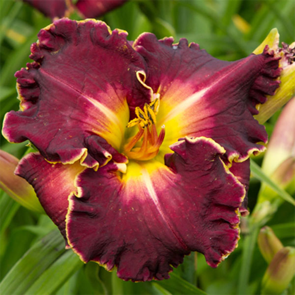 Саженцы и рассада Лилейника гибридного Ноти Ред (Hemerocallis) придутся по вкусу любителям крупных ярких цветов, которые издалека привлекают внимание. Соцветия могут достигать до 15 см в диаметре, лепестки плотные, гофрированные. Они окрашены в насыщенный винный оттенок с узкой желтой окантовкой по краю.