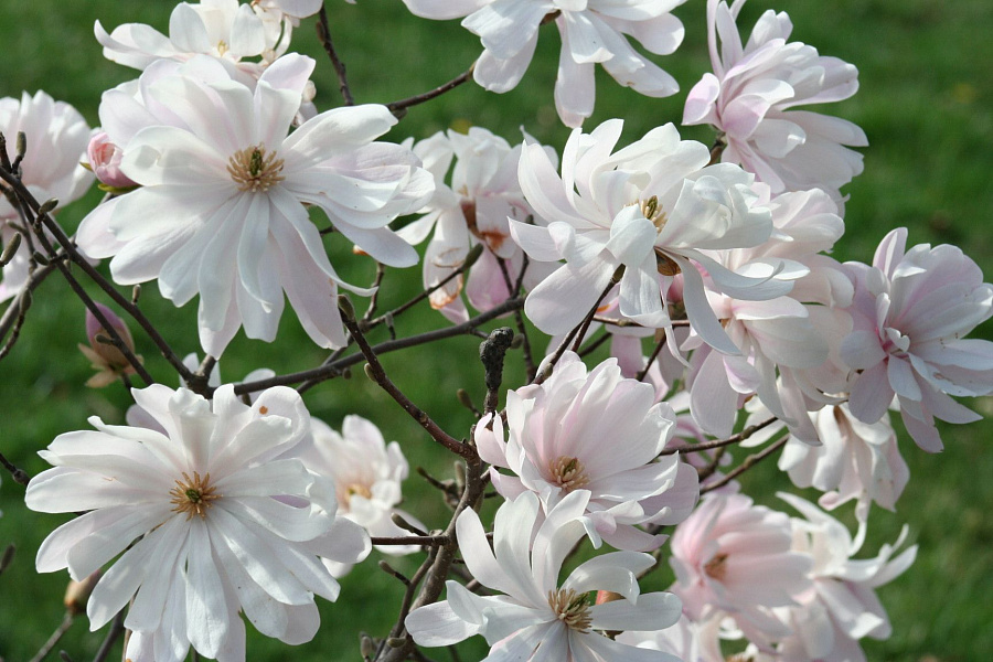 Саженцы магнолии звездчатой Вотерлили (Magnolia stellata, Waterlily) высаживают на солнечных местах садов. Красивоцветущее деревце станет украшением открытой территории. Высота взрослого растения — 3 метра, форма закругленная, компактная. Цветет до появления листьев в первой половине апреля. Ценится за красивые белоснежные цветы, достигающие 15 сантиметров в диаметре, отличающиеся оригинальной формой — имеют множественные удлиненные лепестки. Благодаря этому цветок приобретает слегка растрепанную форму. Для правильного развития культуры выбирают плодородную влажную почву с небольшим добавлением гумуса.