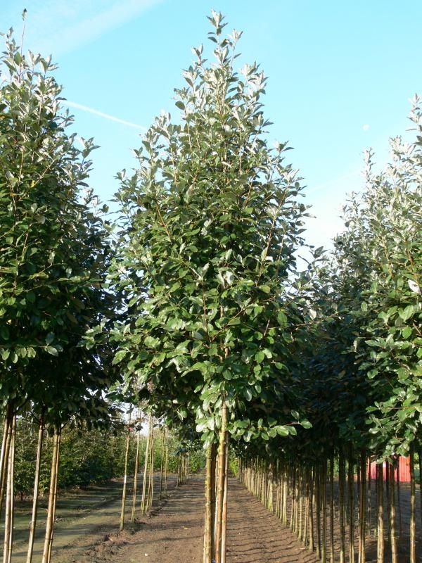 Саженцы Рябины ария Магнифика на штамбе (aria Magnifica) – изысканное стройное дерево, высота не превышает 10 метров. Молодое растение имеет крону-сферу, а с возрастом она вытягивается вверх. Новые веточки белые, словно покрыты бархатом, со временем опушенность уходит, а оттенок становится коричневым и даже красным. Листочки округлые, сперва имеют очень светлый цвет, а постепенно, по мере роста наливаются зеленью. В Осеннего период крона становится бронзовой. Цветёт древо в мае, соцветия не густые. После опадания лепестков образуется ягодка. Плоды по мере созревания наливаются ярким оранжевым цветом. Ягоды можно употреблять в пищу, они не очень сочные, но полезные. Чтобы урожай был обильным, следует высаживать ростки в плодородную землю.