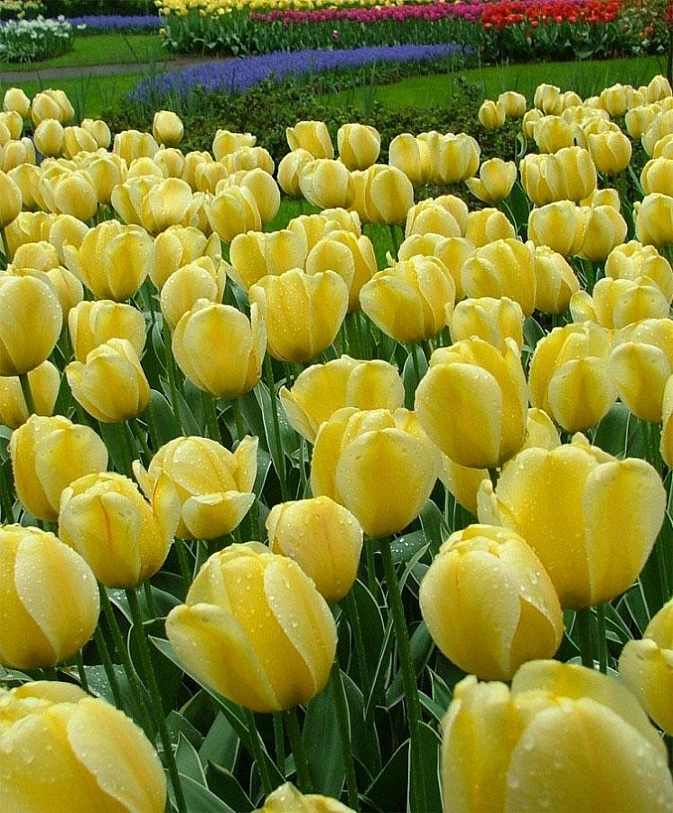 Луковицы тюльпана Джап Грот (Jaap Groot) отличный посадочный материал для украшения любой территории – будь то городская клумба или приусадебный участок. Этот весенний цветок имеет крупный бокал ярко- желтого цвета, может достигнуть 10 сантиметров в диаметре. Само растения высотой до 60 сантиметров.